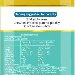 Natures Way Kids Smart Vita Gummies Probiotic + Prebiotic has 2 billion good probiotics per gummy to top up your child’s daily probiotic intake.
