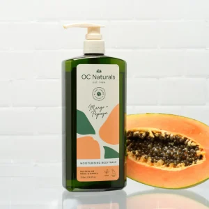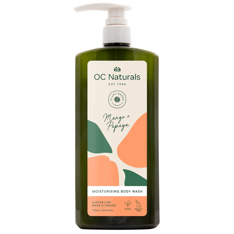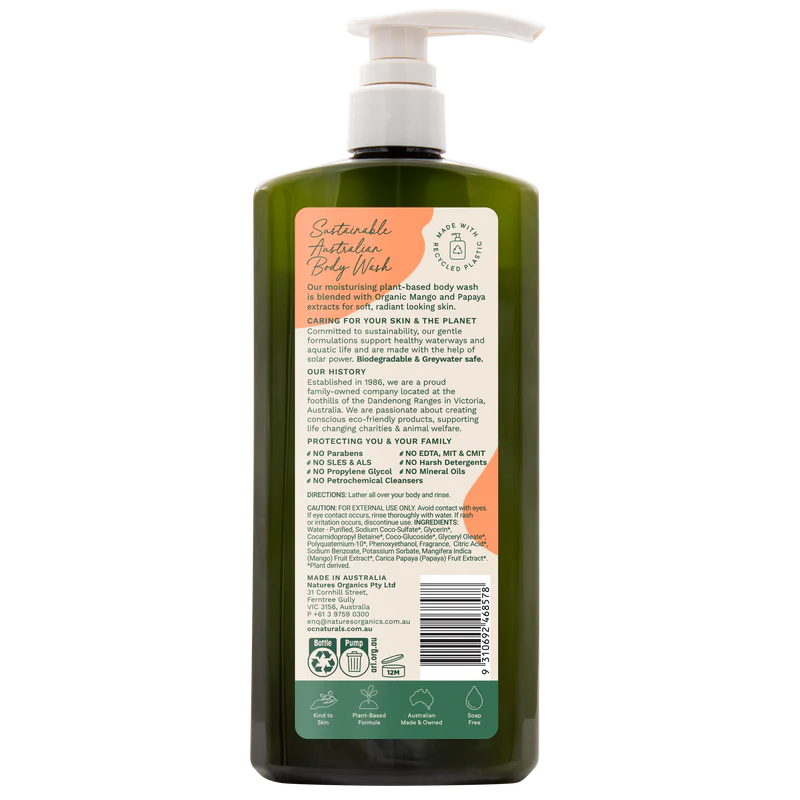 Our moisturising plant-based body wash is blended with Organic Mango and Papaya extract for soft, radiant looking skin.