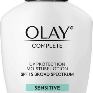 Protect against the #1 cause of aging skin—damage from the sun. Recommended by the Skin Cancer Foundation, Olay Complete Daily Moisturizer with Broad Spectrum Sunscreen SPF 15 Facial Moisturizer, with UVA/UVB protection, provides 8 hours of hydration for sensitive skin. This gentle, lightweight lotion is now formulated with Vitamin E Antioxidant Complex to help protect skin’s surface from damaging free radicals. Plus, its fragrance-free formula features aloe and zinc oxide for healthy-looking skin