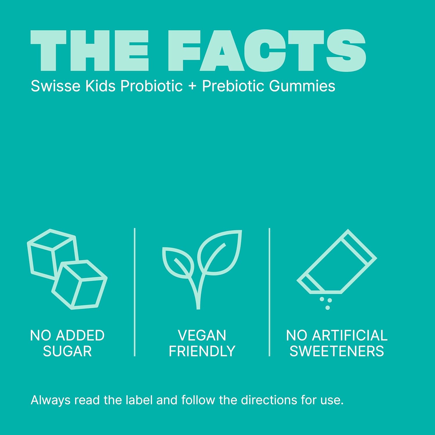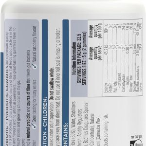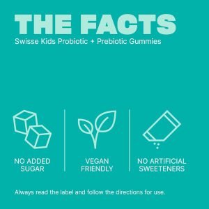 Support your child’s dietary needs with Swisse Kids Probiotic + Prebiotic Gummies. Each gummy delivers a powerful 2 billion CFU of probiotics per daily serve, as well as chicory root, a natural prebiotic fibre. The delightful raspberry flavour makes them a hit with fussy eaters. Free from artificial sweeteners and suitable for vegans and vegetarians, this fridge-free formula is a convenient addition to your child’s daily diet.