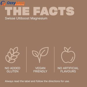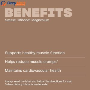 Swisse Ultiboost Magnesium supports healthy muscle function and reduces muscle cramps and spasms when dietary intake is inadequate. Formulated with an active lifestyle in mind, it also supports a healthy stress response in the body and maintains energy production.