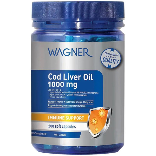 Cod Liver Oil provides a natural source of Vitamins A and Vitamin D, both of which support immune system health and support healthy immune system function. Wagner Cod Liver Oil 1000 mg is supplied in the convenience of capsules.